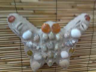This beautiful butterfly is designed with Sea Shells and Gems. It measures Eight inches in height and about three and a half inches in width.